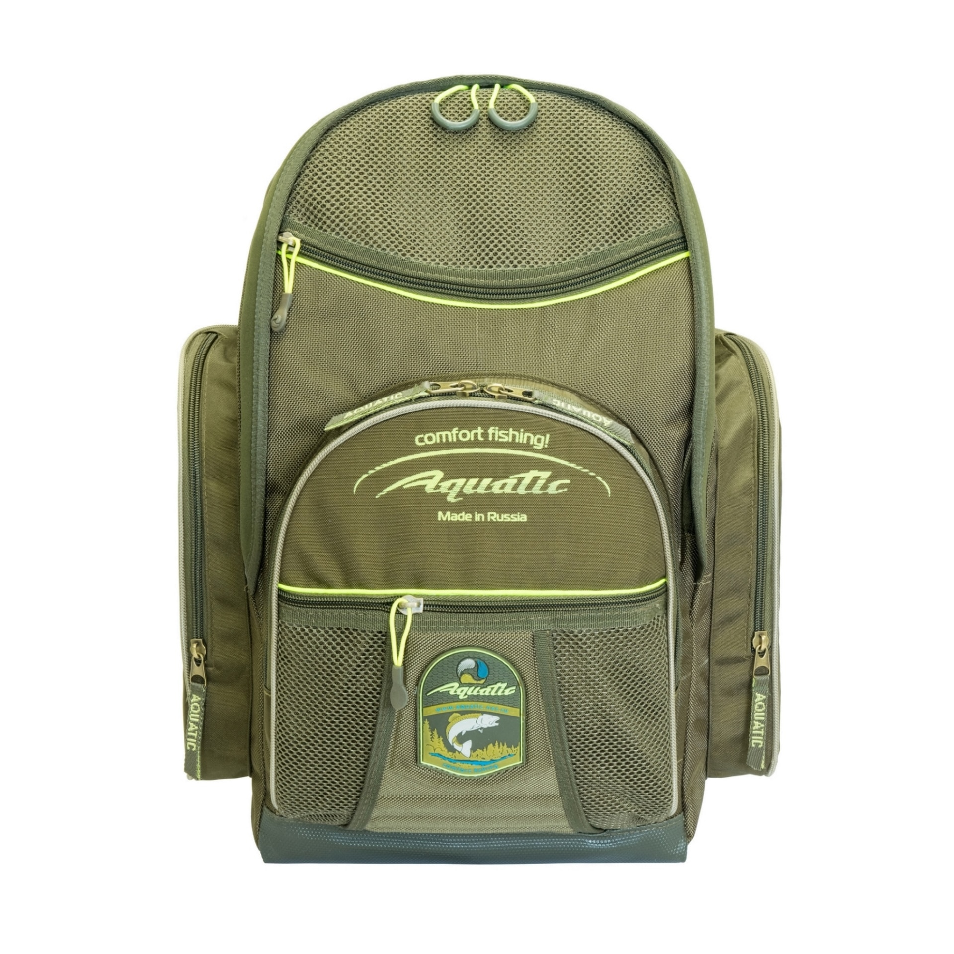Рюкзак Aquatic состоит из общего отделения и 5 изолированных карманов. Вход в основное отделение защищен от влаги неопреновой лентой. Рюкзак имеет стандартную подвеску с грудной регулировкой и уплотненную спинку. Популярен как небольшой городской рюкзак.