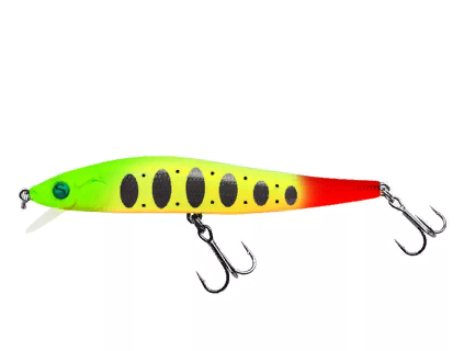 Минноу имеет сложную геометрию с плоским брюшком и боками, изогнутой спинкой. Система огрузки состоит из нескольких элементов. Воблер на равномерной проводке и Stop & Go показывает роллинг (продольные колебания). На твиче мечется по сторонам, словно испуганный малек. Шумовая камера приманивает потенциальную добычу даже при плохой видимости. Минноу подойдет для рыбалки на горбача-окуня и крупную щуку.