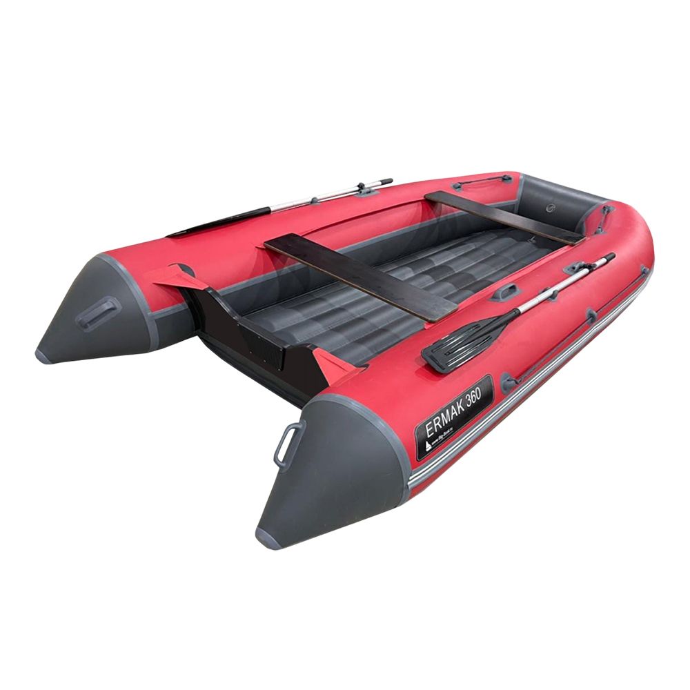 Лодка Ermak 360 является транцевой лодкой с габаритными размерами 3600х1850 мм и диаметром бортовых баллонов 500 мм. Грузоподъемность этой лодки до 550 кг. Конструкция лодки предусматривает наличие 3 независимых надувных отсеков, которые позволяют сохранить плавучесть лодки даже при аварийном проколе 2 из ни
