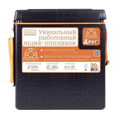 Ящик рыболовный-поплавок Camping World "Друг-2", 30 л, черный,+самоспасатель Друг