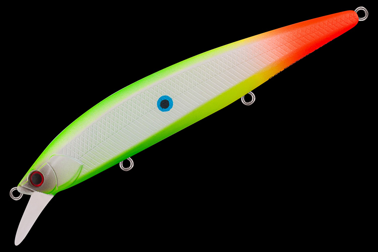 Особенности дизайна: COLECTOR 110 SP имеет две разделенные боковой линией рельефные фактуры поверхности. Верхняя часть выполнена в виде ромбовидных насечек, нижняя - в виде косых насечек, создающих эффект рыбьей чешуи. Головная часть воблера имитирует жаберные крышки рыбки. Вклеенные 3D-глаза завершают реалистичный дизайн приманки. COLECTOR 110 SP оснащен тремя острейшими тройниками соответствующего приманке размера, силовой фурнитурой и заводными кольцами