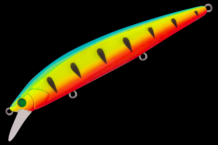 Особенности дизайна: COLECTOR 110 SP имеет две разделенные боковой линией рельефные фактуры поверхности. Верхняя часть выполнена в виде ромбовидных насечек, нижняя - в виде косых насечек, создающих эффект рыбьей чешуи. Головная часть воблера имитирует жаберные крышки рыбки. Вклеенные 3D-глаза завершают реалистичный дизайн приманки. COLECTOR 110 SP оснащен тремя острейшими тройниками соответствующего приманке размера, силовой фурнитурой и заводными кольцами