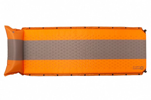 Толстый самонадувающийся коврик с подушкой высотой 15 см, имеющей отдельный клапан. Пена с перфорацией уменьшает вес и увеличивает компактность. Антикоррозийный пластиковый клапан. Помимо этого коврик оснащен кнопаками для состыковки с аналогичной моделью. Количество кнопок 9 штук, с каждой стороны. Размер коврика: 193*65*(5+15) см. Вес – 1,6 кг. Вне палатки коврик переносится в сумке 65*15*15 см.