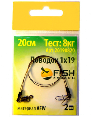 Поводок FISH SEASON AFW 1Х19, тест 8 кг, 25 см (2 шт.)