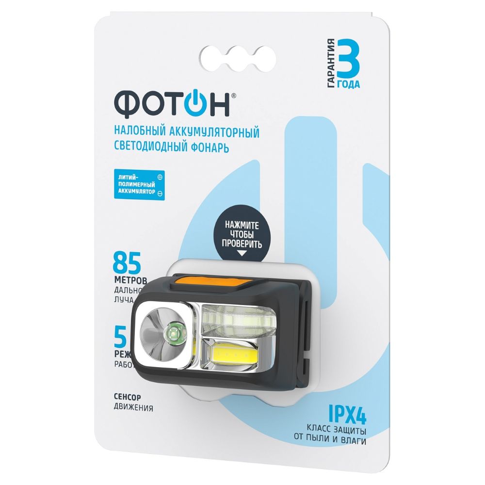 Фонарь налобный аккумуляторный светодиодный Фотон SA-850S 3W+1W=1W(красный) LiPo 1200mAh Сенсор