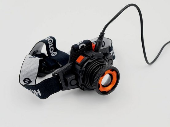 Изменение угла наклона фонаря одним движением, не снимая с головы. Источники света – светодиод мощностью 3Вт. В комплекте – литий-полимерный аккумулятор емкостью 500мАч. Регулируемый фокус.