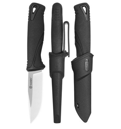 Фиксированный нож Ganzo можно взять с собой в поход, на охоту, на рыбалку или любую другую вылазку на природу. Лезвие изготовлено из закаленной нержавеющей стали. Рукоять не скользит в руке, благодаря прорезиненному материалу и насечкам на поверхности. Длина ножа вместе с ножнами составляет 20,5 сантиметров.