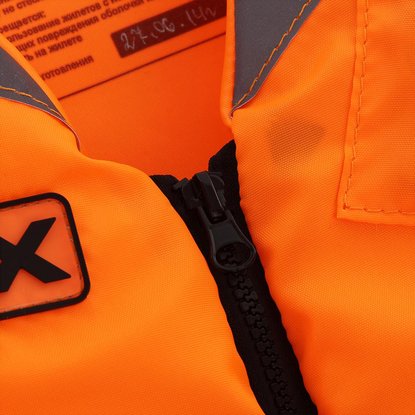Жилет снабжен световозвращающими вставками на груди и спине, и свистком (с фонариком) на бечевке для подачи световых и звуковых сигналов. В жилете предусмотрен карман на «молнии» для мелочей.
