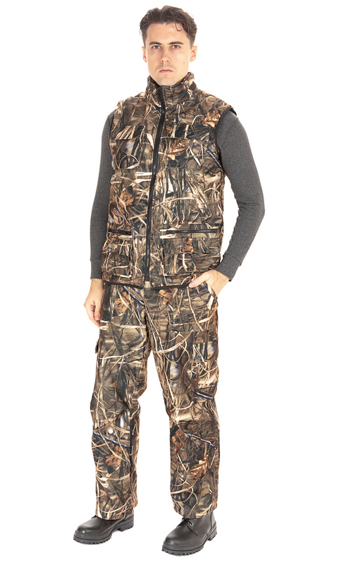 Универсальный разгрузочный костюм для теплой и прохладной погоды. Костюм тройка. Состоит из куртки, брюк, утепленного жилета. Утеплённый разгрузочный жилет защитит в холодную погоду. Камуфляжная расцветка с маскировочным эффектом.