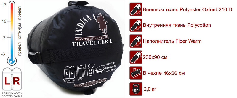 Спальный мешок INDIANA Traveller L-zip от -6 °C (одеяло с подголовником 230+35X90 см)