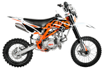 В основе конструкции питбайка лежит рама типа Evolution, из-за чего обновленная модель стала немного выше: высота сиденья в 885 миллиметров будет впору людям от 155 и выше сантиметров. В раме устанавливается 4-тактный двигатель YX1P56FMJ объемом 140 см3. Этот экономичный мотор с 4-скоростной трансмиссией отличают высокая надежность и солидный ресурс; показатели пиковой мощности составляют 13 л.с. Стабильность рабочих характеристик двигателя в широком диапазоне обеспечивает система воздушно-масляного охлаждения с выносным радиатором.