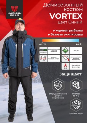 Демисезонный костюм VORTEX разработан для рыбалки в прохладную, дождливую погоду в диапазоне температур от +15 до 0 градусов. Костюм выполнен из легкой и прочной ткани Nylon 228T с оригинальной грязе- и влагозащитной обработкой Teflon. Мембрана Magnum BOREY с показателями 15000/23000 обеспечивает защиту от влаги и эффективное пароотведение. Для максимальной защиты от воды швы в костюме VORTEX проклеены. Костюм состоит из куртки и брюк с высокой утепленной спинкой для лучшей защиты поясницы от ветра и холода. Утеплитель в данной модели используется Слайтекс Премиум, обладающий высокими свойствами теплоизоляции при небольшой толщине, а также повышенным содержанием силиконизированных волокон для оптимальной работы в условиях повышенной влажности.