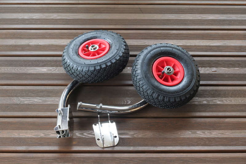 Для лодки НДНД (с надувным дном низкого давления) транцевые колеса изготавливаются более длинного размера - 52 см. Также, для тяжелых лодок свыше 150 кг рекомендуется использовать усиленные транцевые шасси с двумя колесами на каждой оси. Универсальная конструкция позволяет использовать их с любыми видами лодок НДНД, в том числе с такими популярными моделями, как "Флагман", "Компас", "Солар", "Гладиатор" и др.