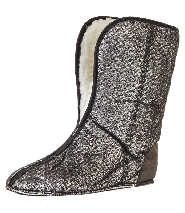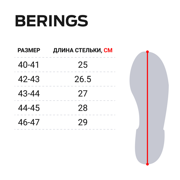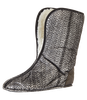 Сапоги cделаны из материала EVA, с увеличенной высокой манжетой, имеют вынимаемый вкладыш, обеспечивают термозащиту в динамике при температуре до –45°С. Удобная амортизирующая колодка, позволяет преодолевать большие расстояния по снегу или льду с минимальными физическими затратами и нагрузками на суставы и позвоночник. Конструкция подошвы, без выраженного каблука, увеличивает сцепление и устойчивость на снегу и льду. Внутреннее строение подошвы имеет «вафельную структуру», позволяющая собирать конденсат с вкладыша, если он образовался. Пятислойный вкладыш, толщиной 20 мм, обеспечивает термоизоляцию и отвод влаги от тела. ‣ 70% искусственный мех, 30% натуральной овечьей шерсти – термозащита и отвод влаги от ног. ‣ Трикотажно-гидрофобное волокно – мембрана для отвода влаги. ‣ Нетканое полотно – сохраняет форму вкладыша. ‣ Металлизированная перфорированная фольга – отражает холод наружу, а тепло к ноге. ‣ Мембранная защитная сетка – сохраняет целостность фольги. ‣ Материал Oxford 600 - повышает износостойкость