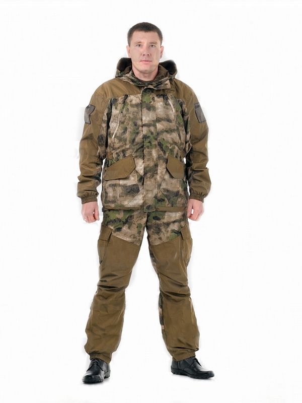 Места повышенного износа имеют дополнительное усиление, мембранной тканью «Кошачий глаз», которая не пропускает влагу снаружи, отводит ее изнутри и обладает повышенной износостойкостью. Рекомендован для военных, охотников, рыбаков, туристов, любителей военно-спортивных игр, представителей силовых структур.