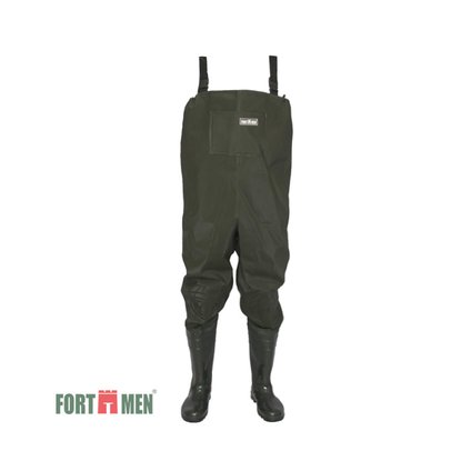Полукомбинезон изготавливается из прочной и водонепроницаемой ПВХ-ткани и высоких мужских сапог на плотной подошве (сапоги устойчивы к мелким механическим повреждениям).