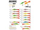 Серия рассчитана на подледную охоту в период глухозимья за неактивной, заторможенной хищной рыбой. Игра представленных здесь приманок среднеамплитудная красивая и плавная. Изготовлен Akara Ruff методом литья и наделен полимерным хвостом, который крепится к корпусу надежно и не боится мороза. Приманка визуально напоминает мелкую рыбешку (название переводится как "ерш"). Плоское брюшко помогает модели совершать плавные развороты и возвраты к исходной точке. Разработчики рекомендуют линейку балансиров Akara Ruff для проводок как в толще воды, так и у дна. В серию включены традиционные для бренда люминесцентные, флуоресцентные или двухсторонние окрасы. Оснащаются все модели острозаточенными крючками Маруто. Кроме впаянных одинарников, на быстросъемной застёжке крепится тройник, на цевье которого есть фосфоресцирующая капля.