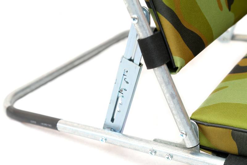 Кресло устанавливается на раскладушку для более удобного времяпрепровождения на природе.