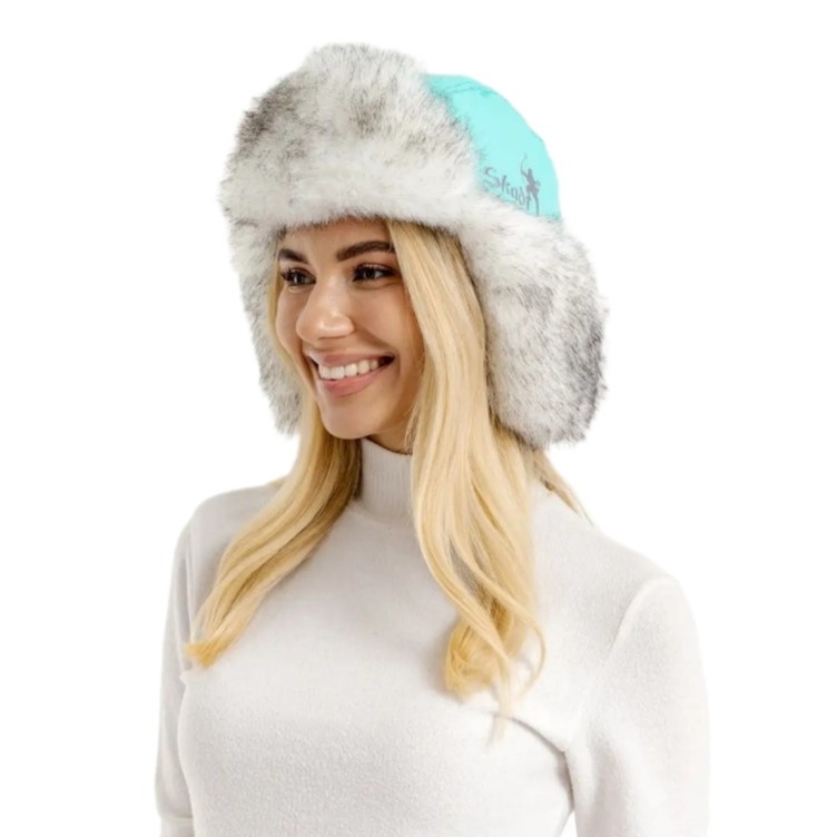Шапка-Ушанка женская Skadi тк.Lokker, цв.Мята/серый, Белый волк