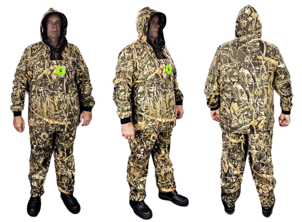 Куртка анорак с противомоскитной сеткой на капюшоне убираемой в потайной нагрудный кармашек с клапаном. По овалу лица капюшон регулируется при помощи шнура. По объёму капюшон регулируется при помощи хлястика на липучке. Два больших нижних накладных кармана, на рукавах трикотажные манжеты, по низу куртки утяжка с фиксатором.
