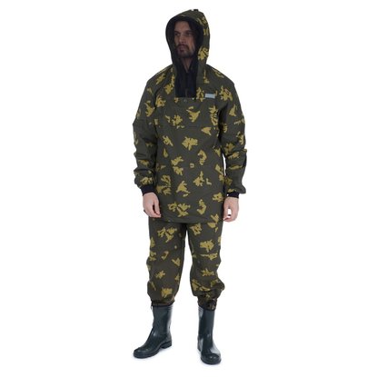 Куртка анорак с противомоскитной сеткой на капюшоне убираемой в потайной нагрудный кармашек с клапаном. По овалу лица капюшон регулируется при помощи шнура. По объёму капюшон регулируется при помощи хлястика на липучке. Два больших нижних накладных кармана, на рукавах трикотажные манжеты, по низу куртки утяжка с фиксатором.