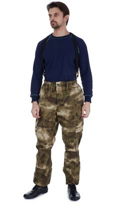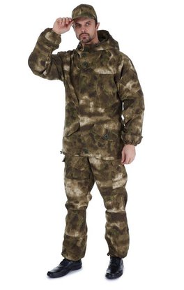 Костюм штурмовой демисезонный анатомического кроя, крепление пуговиц усилено киперной лентой, 11 карманов, капюшон с козырьком, манжеты рукавов и брюк на резинке, усиление на локтях, на коленях и на седалище, пояс на резинке со шлевками, пыльники с завязками, съемные помочи на пуговицах.