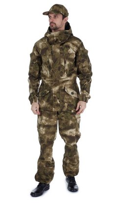 Костюм штурмовой демисезонный. Модернизированный вариант демисезонного костюма "Горка 3М". Отличительные особенности: куртка с застёжкой на двухзамковую «молнию» под ветрозащитной планкой на кнопках; два нагрудных кармана с листочкой на "молнии". 12 карманов, капюшон с козырьком, манжеты рукавов и брюк на резинке, усиление на локтях, на коленях и на седалище, пояс на резинке со шлевками, пыльники с завязками, съемные помочи на пуговицах