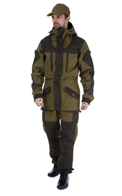 Костюм штурмовой демисезонный. Модернизированный вариант демисезонного костюма "Горка 3М". Отличительные особенности: куртка с застёжкой на двухзамковую «молнию» под ветрозащитной планкой на кнопках; два нагрудных кармана с листочкой на "молнии". 12 карманов, капюшон с козырьком, манжеты рукавов и брюк на резинке, усиление на локтях, на коленях и на седалище, пояс на резинке со шлевками, пыльники с завязками, съемные помочи на пуговицах.