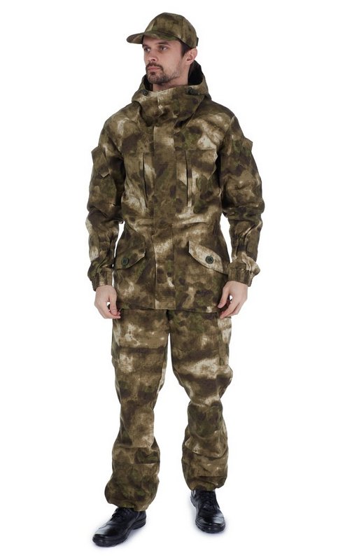 Костюм штурмовой летний. Модернизированный вариант летнего костюма "Горка 3М". Отличительные особенности: куртка с застёжкой на двухзамковую «молнию» под ветрозащитной планкой на кнопках; два нагрудных кармана с листочкой на "молнии". 12 карманов, капюшон с козырьком, манжеты рукавов и брюк на резинке, усиление на локтях, на коленях и на седалище, пояс на резинке со шлевками, пыльники с завязками, съемные помочи на пуговицах.