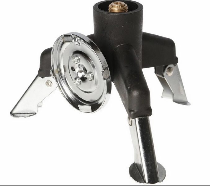 Используется для подключения светильников и портативных плит серии S с клапаном «Screw Type» к газовым баллонам с нажимным клапаном и цанговым патроном. После подключения в качестве опорной поверхности используется тройная опора переходника.