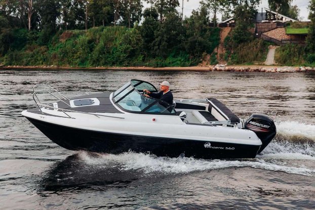 Катер «Феникс 560» в классе судов типа Cuddy Cabin, удачно сочетает в себе современный дизайн и высокий уровень комфорта, с прочностью, надежностью и простотой управления. Отличительной особенностью экстерьера модели является надежно защищающее от встречного и бокового ветра лобовое стекло, оправленное в раму из алюминиевого профиля. Особое же внимание проектировщики уделили рациональному использованию внутреннего объема катера данной модели. В числе продуманных решений - трансформирующийся в спальное место диван в каюте (комфортное размещение до трех человек), самый просторный в своём классе кокпит(палуба), два мягких поворачивающихся кресла и широкий кормовой диван, объемные рундуки под задним диваном и в полу кокпита.