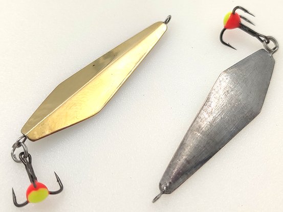 Блесна "Сумская 4" - это односторонний широкий ромб с плавной игрой. Длина блесны 42мм, вес 4.6г. Игра блесны плавная, без резких бросков в сторону. Лучшая проводка для этой блесны - плавные махи с небольшой амплитудой. Блесна хорошо планирует с небольшим уходом в сторону с покачиванием в фазе возврата. Блесной можно работать проводкой "КД". Неплохо собирает окуня с дистанции.