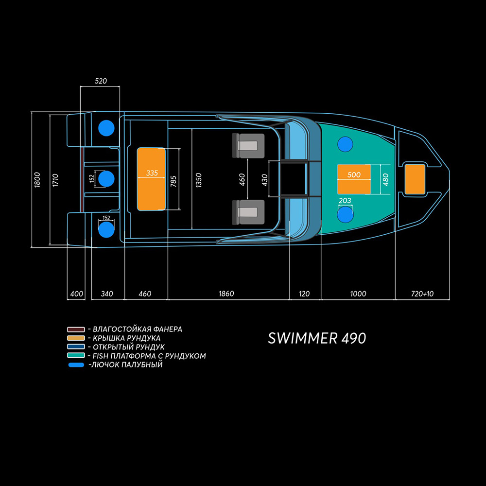Самая большая и самая вместительная лодка серии SWIMMER! В ней поместится вся семья, все необходимые вещи и даже больше. Небольшая килеватость позволяет лодке с легкостью проходить обмелевшие речки. Лодка изготовлена из листов полипропилена (PP) — материал, который по прочности превосходит алюминий и стеклопластик. А положительная плавучесть и наличие блоков плавучести обеспечат безопасность в любой ситуации.