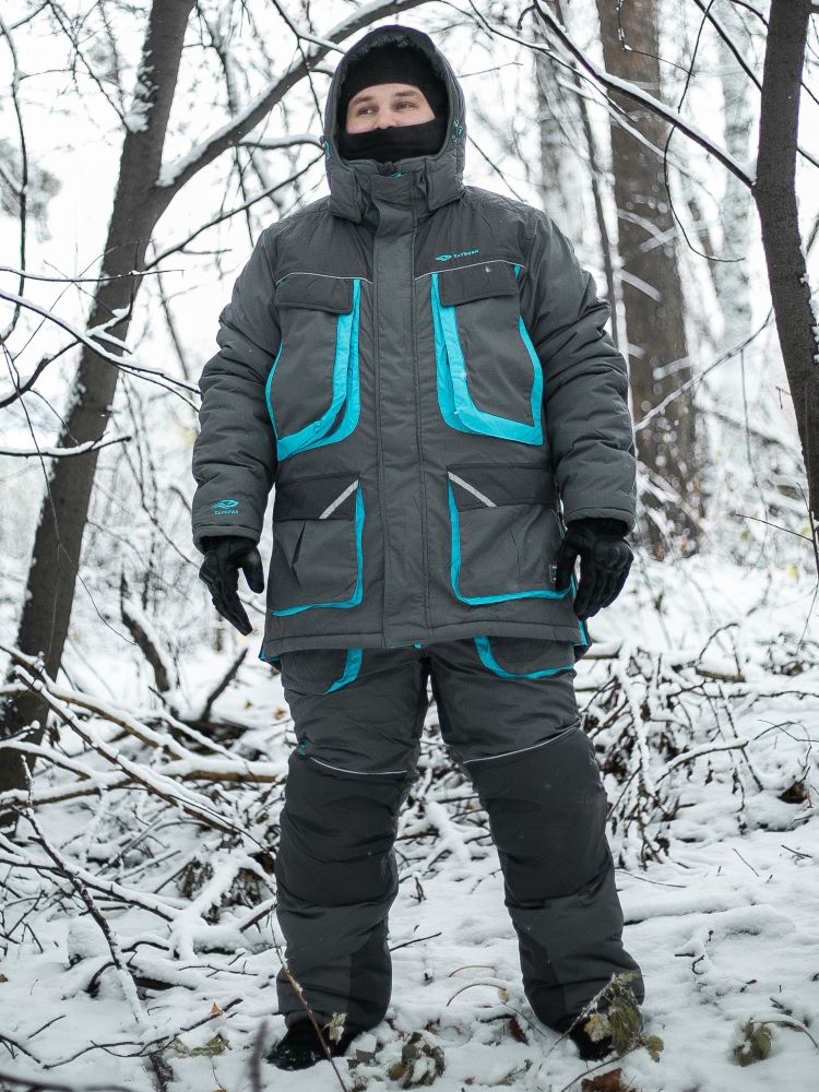 Костюм мужской Граф -45* Taйгер, тк. таслан, Оникс/бирюза (р. 48-50/182-188)