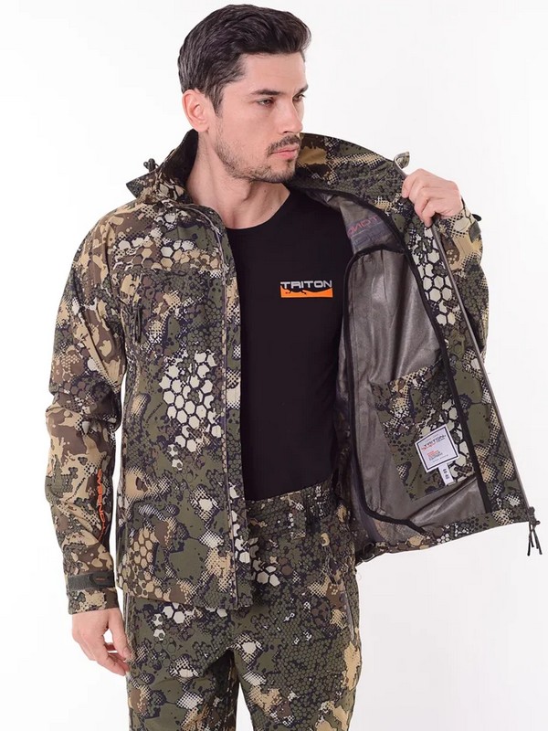 Изготавливается из практичного многослойного материала SoftShell (СофтШелл), который производится путем наложения прочного, износостойкого внешнего слоя на более мягкий внутренний слой. Между ними – мембранная прослойка с высокими показателями влагозащиты и пароотведения 10000/10000. Слои надежно соеденены PU (полиуритановой) пропиткой. Внешняя поверхность защищает от ветра и осадков, а внутренний слой ткани отводит избыточную влагу, позволяя телу дышать.