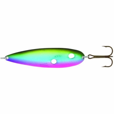 Два отверстия с изогнутыми краями в толстой вытянутой пластине - особенность серии колебалок Thundra 85/19. Разработчики Kuusamo создали приманки для облавливания проточных акваторий. Сквозные отверстия с одной стороны позволяют сбросить излишнее водное давление, с другой - создают дополнительные гидроакустические вибрации. Колебания Kuusamo Thundra 85/19 рыбы без труда заметят издали. Модель имеет длину 8,5 см и массу 19 гр. Дальнобойная. Хорошо держит глубину, не выталкивается на поверхность на сильном течении. Обладает дразнящей стабильной игрой. Создана колебалка для охоты на лососевых, однако привлекает также судака и зубастую щуку.