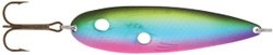Прогонистая геометрия, выверенный изгиб и два небольших отверстия с загнутыми краями - особенность колебалки серии Thundra 95/24. Модель была разработана экспертами бренда Kuusamo для рыбалки в быстроводных речках на крупных лососевых. Однако подойдет и для охоты на зубастую щуку или на судака. Длина представленной приманки составляет 9,5 см, масса - 24 гр. Благодаря параметрам, блесна дальнобойная, поможет исследовать обширные акватории. Конструкция Kuusamo серии Thundra 95/24 обеспечивает дразнящую интенсивную игру. Два сквозных отверстия позволяют сбросить излишнее водное давление и создают дополнительные гидроакустические вибрации. Колебалка хорошо удерживает глубину в потоке, не "выскакивает" на поверхность.