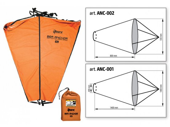 Якорь - парашют отлично подходит для «поисковой рыбалки» При его использовании отпадает необходимость постоянно поднимать и опускать якорь, он выбрасывается за борт и лодка начинает медленно дрейфовать, позволяя рыболову облавливать всю акваторию. При сильном ветре и больших волнах, с обычным якорем лодку постоянно подкидывает на волне, стоять, а тем более ловить, довольно проблематично. Парашют же значительно гасит подбрасывание лодки на волне. Вы можете регулировать скорость дрейфа по водоему: в центре парашюта сделано отверстие, диаметр которого можно изменять, чем меньше диаметр отверстия тем медленней дрейфует лодка. Свободный конец якоря крепится к носу или борту лодки, парашют расправляется и выбрасывается за борт. После его раскрытия в воде лодка начинает медленно дрейфовать. Вытаскивается парашют просто и без усилий! Нужно потянуть за одну из строп и якорь сложится!